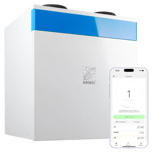 Das Airobot V3 ERV-Lüftungssystem ermöglicht einen Luftstrom von bis zu 286 m3/h oder 80 l/s
