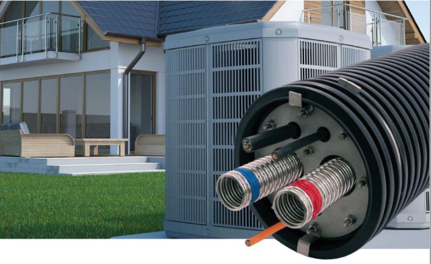 Radondichte isolierte Wärmepumpenverrohrung mit Schutz und Fühlerkabel