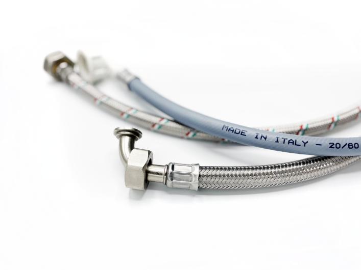 High quality standards, with brass fittings and Inox stainless steel external braid.