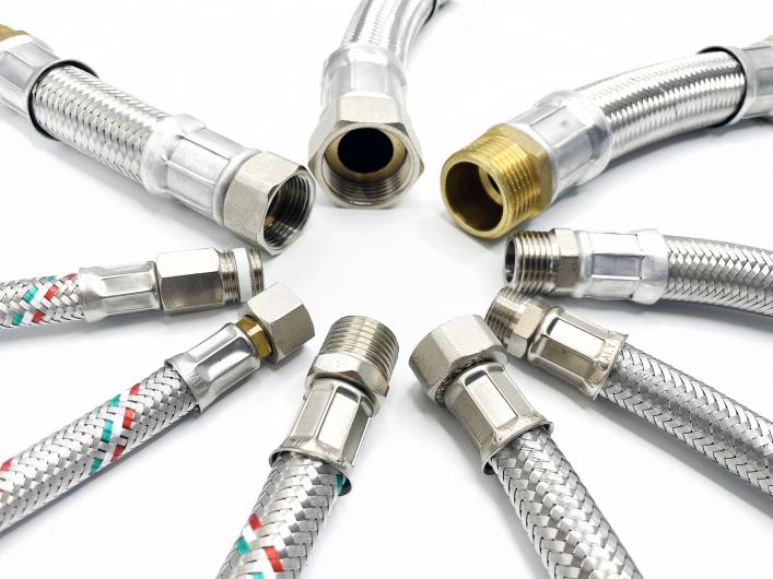 High quality standards, with brass fittings and Inox stainless steel external braid.