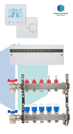 Unsere Einzelraumregelungssysteme bieten eine präzise und komfortable Steuerung der Raumtemperatur. Sie bestehen aus verschiedenen Komponenten wie dem Raumthermostat (in analoger oder LCD-Ausführung) und einer Basisstation, die die zentrale Steuerung ermöglicht. Diese Systeme sind in zwei Varianten verfügbar: als verdrahtete Version oder als Funkversion, beide im gleichen modernen Design.