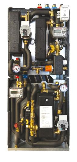 Einheit zusammen. Es ermöglicht dem Kunden eine einfachere Installation und spart Platz. Es ist hydraulisch vom Heiz- und Kühlsystem getrennt.