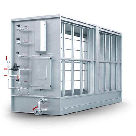 - Adiabate Abluftkühlung, optional direkt in Kombination mit kundenseitigem Wärmetauscher