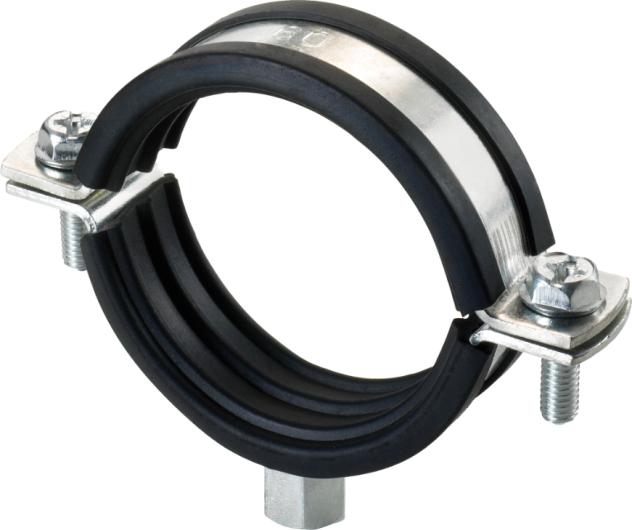 Manufactured in galvanized steel. EPDM rubber to insulate and soundproof DIN 4109. Captive M-6 lateral screws through PVC joints and triple flat, philips and hexagonal actuation. Double thread M-8 + M-10 nut welded. Maximum working temperatures -30º / 110º. For fixing heavy pipes of copper, PVC and steel.