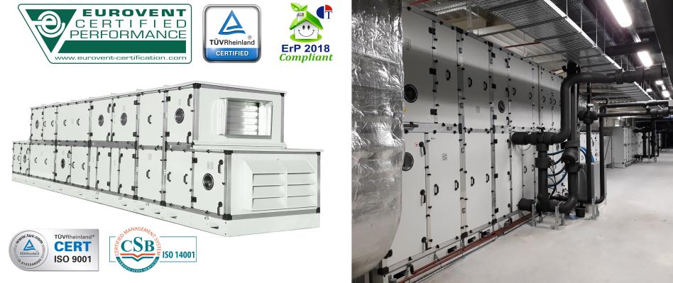 Modular air handling units for ventilation of premises providing flexibility and wide selection of components and technologies for ventilation and air conditioning. The range of AHUs are developed according to customers’ needs and include 15 different models with air flow between 3500m3/h and75000m3/h and with remarkable energy recovery from 79% up to 92%(EN308). TANGRA AHU Modular ST are excellent solution for ventilation of industrial and commercial buildings, automobile industry, production premises and factories, variety of industrial buildings, energy sector premises, office buildings, commercial and logistic centers, etc. The whole range of air handling units TANGRA AHU Modular are certified by Eurovent.