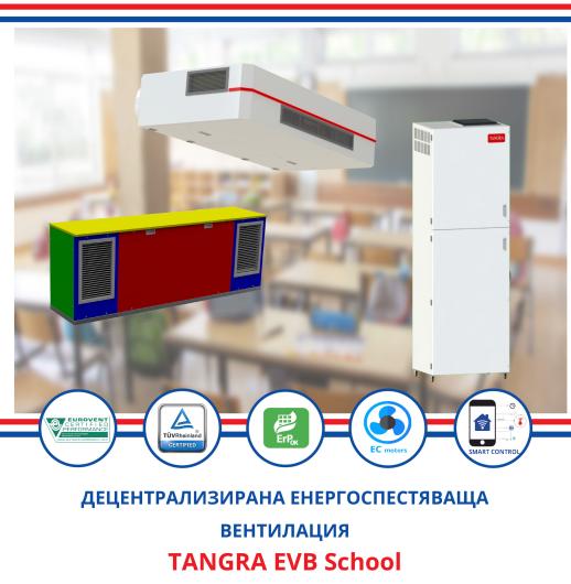 The TANGRA EVB HiE series is the ideal solution for various types of applications, meeting demanding requirements and providing high efficiency and wide variety of options. The range includes 14 models with different flow rates of 150 m3 / h. up to 6400 m3 / h and efficiencies between 79% and 88% (EN308; ErP Regulation 1253:2014 and 1254:2014). The models are available in versions for outdoor and indoor installation, as well as for horizontal and vertical installation. The range of high efficiency heat recovery units TANGRA EVB HiE is manufactured with built-in Eurovent certified plate heat exchanger TANGRA REC HiE.