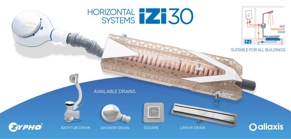 Der ZYPHO iZi30, der unter der Duschwanne, der begehbaren Dusche oder dem Badewannenablauf installiert wird, kann bis zu 33 % Energie einsparen, indem er die Energie, die in den Abfluss fließt, wiederverwendet. Mit Hilfe eines Wärmetauschers und ohne Vermischung von sauberem und Grauwasser extrahiert der Zypho verschwendete Energie aus dem Duschwasser. Dieses vorgewärmte Wasser kann entweder zur Duscharmatur, zum Warmwasserbereiter oder zu beiden geleitet werden.