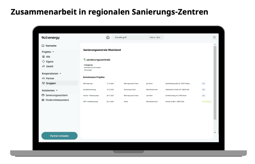 We give you access to a rapidly growing network of partner companies in the field of energy-efficient renovations (energy consultants, HVAC companies, photovoltaic, insulation and window companies).