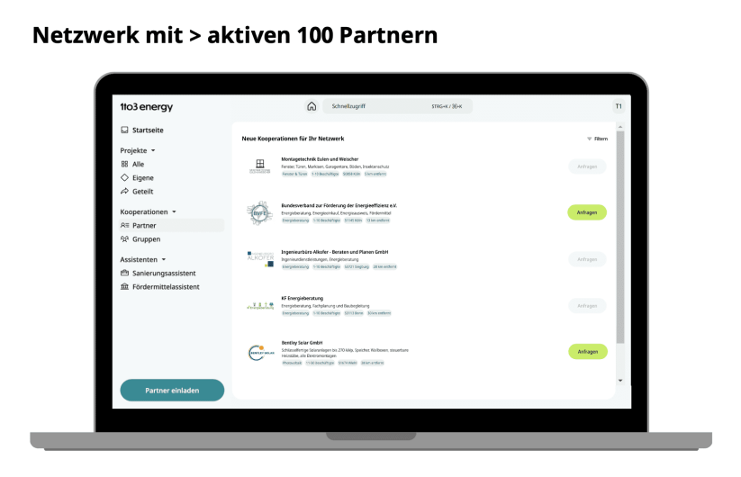 We give you access to a rapidly growing network of partner companies in the field of energy-efficient renovations (energy consultants, HVAC companies, photovoltaic, insulation and window companies).
