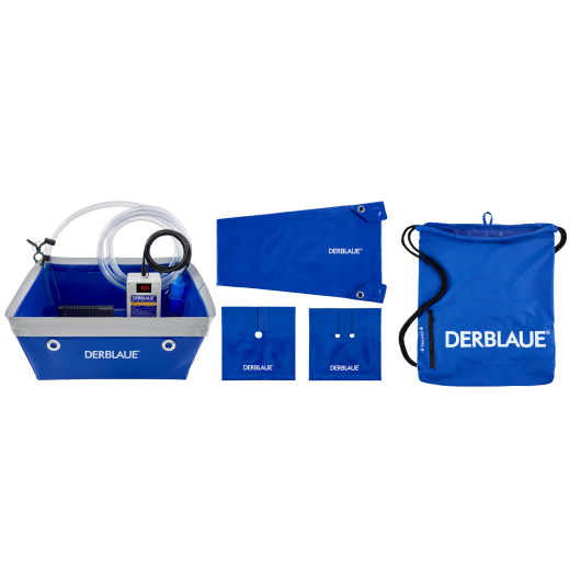delivers an “all-round, worry-free package” for every application! Liquids can be collected in the highly flexible tub and pumped away using the powerful pump system, powered by a power supply or splash-proof battery. The helper set included in the scope of delivery ensures maximum cleanliness of the construction site, consisting of a slide, single and double splash guard. While the splash guards serve as splash protection around pipes, the slide directs liquids specifically into the professional tub. All products are equipped with strong bending metal elements that can be shaped as often as required and can therefore also be used for tight, narrow or angled installation situations.