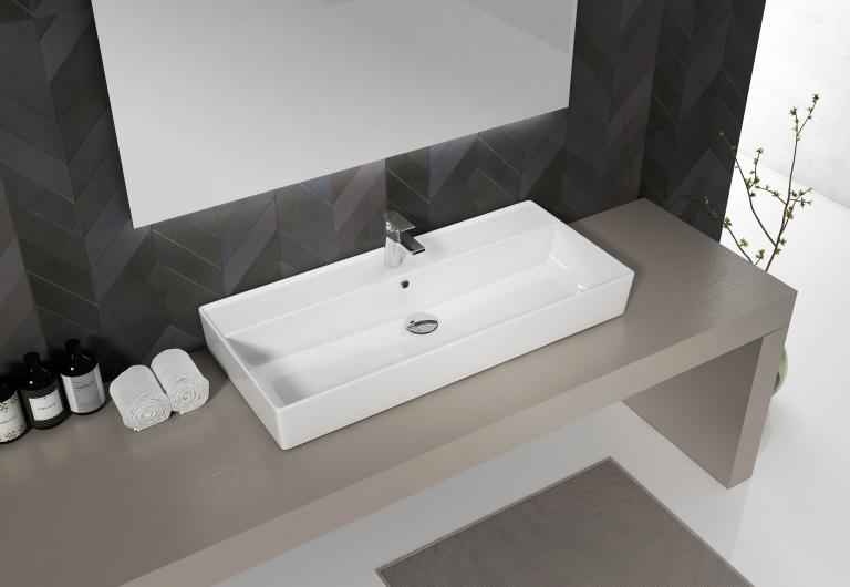 Cross Line Countertop Washbasin with Tap hole and with overflow hole.