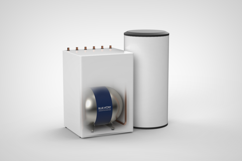 BlueHeart replaces the refrigerant circuit with a thermo-acoustic engine using sound waves to create a temperature difference for HP's and Airco's.