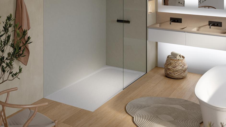 Inspired by the Neo Art Deco movement, the Unic Slate shower tray from Acquabella features an elegant arch of gentle slopes that frames a modern drain, all in the elegant texture of slate stone. This original model has 3 available grates to choose from. Let yourself be surprised by the style of Unic Slate.