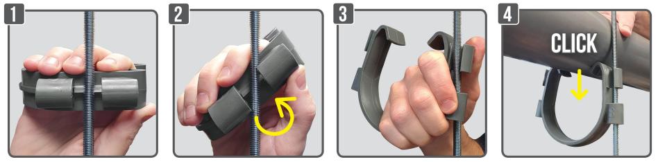 - Fastening pipes to a threaded rod in a crawl space or drop ceiling