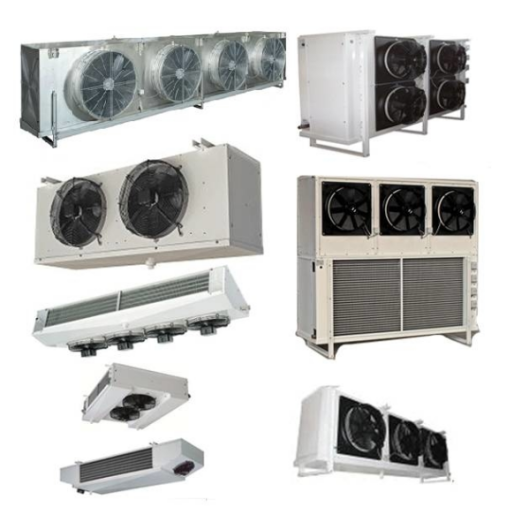 - Unit air coolers made of copper tubes, aluminium, epoxy coated aluminium or copper fins and suitable for HFC refrigerants and brine/water cooling agents