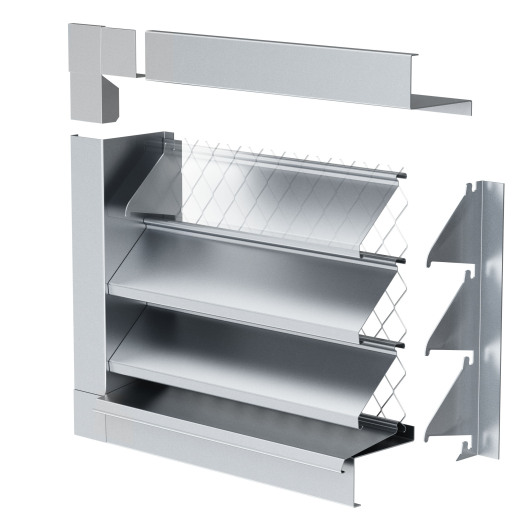 The modular system makes it possible to produce weather louvres of various dimensions – quickly and easily. The frame covers break edges on the wall breakthrough and ensures a clean wall ending.