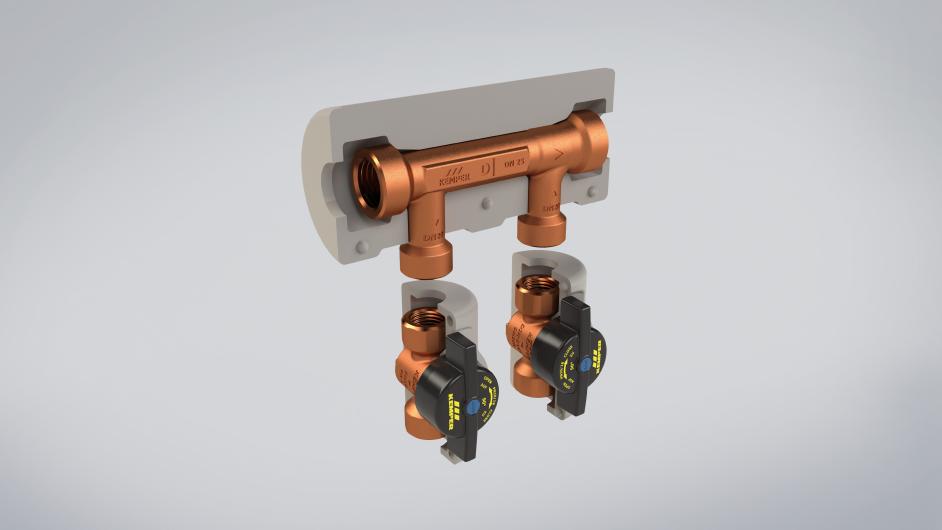 In terms of ease of installation, the valve scores highly with the flexible collar, which also compensates for the angle of the sloping hole and ensures a clean, flush finish. This effect gives the valve additional support. The façade is not damaged when the outlet housing is tightened, preventing the thermal insulation from being pressed in. The newly designed mounting surfaces on the valve body offer the plumber the greatest possible support for optimum installation and enable installation without damaging the surface. The fitting also has an optimised anti-twist protection that locks securely into the fitting and thus protects the connection to the drinking water pipe from radial and axial forces during installation.