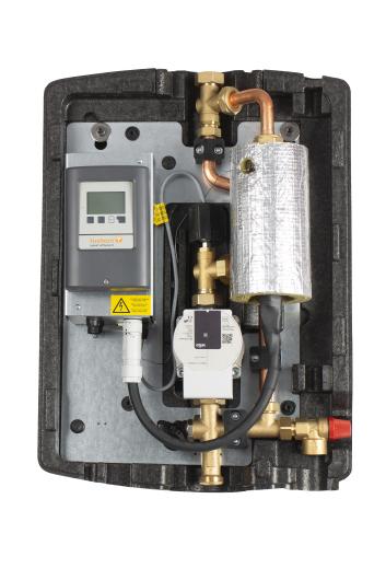 The tubra®-e-Therm C is a hydraulic unit with electronic target temperature control for thermal storage of PV electricity.