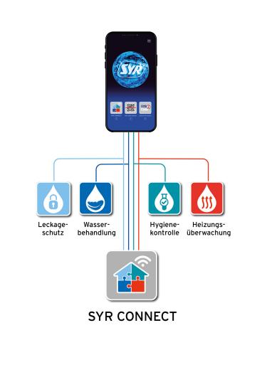 Smart safety in domestic installations - The SYR CONNECT system The proven, top quality technology of SYR valves combined with smart control electronics: this is SYR CONNECT, our easyto-install, clear communication network. It can be extended by further CONNECT devices at any time, without additional cables.
