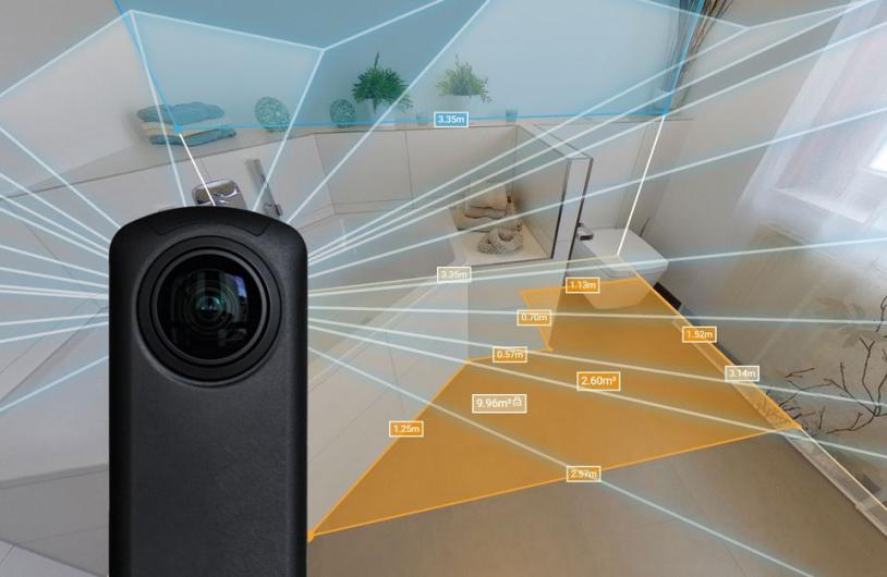 Die Künstliche Intelligenz wurde von immersight auch auf die Vermessung von Räumen in 3D trainiert. Damit lässt sich das Aufmaß eines alten Badezimmers automatisieren. Hierfür stellt man zunächst eine 360°-Kamera ins Badezimmer und lässt in 1 Minute eine Komplettaufnahme des Raumes erstellen. Nachdem die Aufnahme in die 3D-Workroom Cloud hochgeladen ist, wird diese in 3D konvertiert und kann dann innerhalb von 30 Sekunden durch die KI ausgemessen werden. Das funktioniert nicht nur bei Badezimmern, sondern auch in Heizräumen und Kellerräumen.