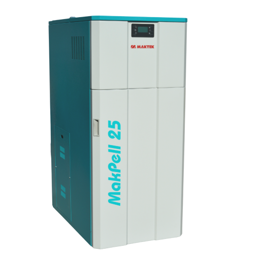 Maktek Pellet boiler is a complete unit with chrome combustion chamber, automatic ignition, waste gas fan, integrated pellet tank, automatic pellet feeding motor, circulation pump, expansion tank, pellet feeding helezone, water and waste gas temprature sensor, integrated safety systems and LCD control panel
