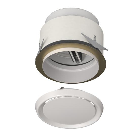 The circular fire damper cartridge is a compact fire resistant product for ducts with a small diameter. It is inserted inside ventilation ducts that cross walls in order to stop the propagation of fire. It is characterised by its easy installation. Two versions are available: the standard fire damper cartridge (technical datasheet S2/S3) and the cartridge equipped with a finishing ventilation valve 'V' (technical datasheet S4/S5) for installation at duct ends.