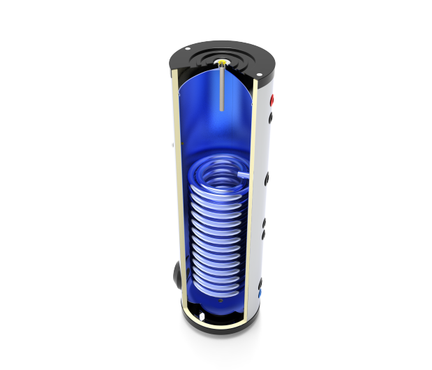 - It is used for the preparation and storage of hot water together with solar collectors and heat sources.
