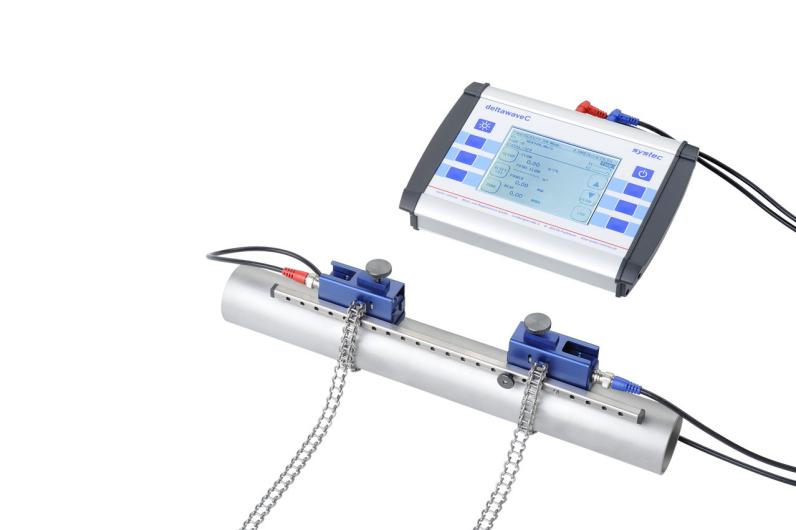 Clamp-on Ultrasonic Flow Meter deltawaveC at a glance deltawaveC by systec Controls is the brand new universal clamp-on ultrasonic flowmeter for liquids in filled pipes. deltawaveC uses the highly accurate transit time method (time-of-flight) to measure the flow of liquids in pipes. Special advantage: The ultrasonic transducers are strapped to the outside of the pipe (clamp-on), cutting or drilling of the pipe is not necessary, pressure losses are not present. deltawaveC Clamp-on Flow Meter: Installation and setup within seconds