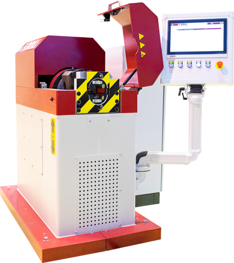 T-DRILL’s latest innovation – Fully automatic servo controlled Tube End Spinning Machine SPM-115 – is designed for flat closing of copper and brass tubes. The machine has a fast cycle time, as the typical process time is only ~ 20–45 seconds depending on tube specification. After the tube has been loaded, the clamps are closed and the rotating tool is automatically fed against the tube end. The friction between the rotating tool and the tube heats the tube end and rapidly forms it flat. Also the machine set up is very fast when product changes: just change clamps according to the tube size, select program from the library and the machine makes the correct adjustments automatically. The operation is completely electric, without hydraulics and pneumatics. This results in silent and very energy efficient, low loss process with high repeatability.