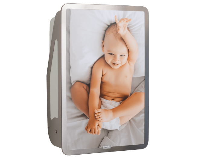 The robust wall changing table can be attached in a space-saving and flexible manner at any desired height. You can easily open and close Quattro with just one hand. Built-in flap brakes ensure that the front plate cannot drop suddenly.