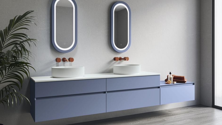 Hidra invites you to create the bathroom you imagine. Adaptable in size, its larger version has a large storage space and a unique design.